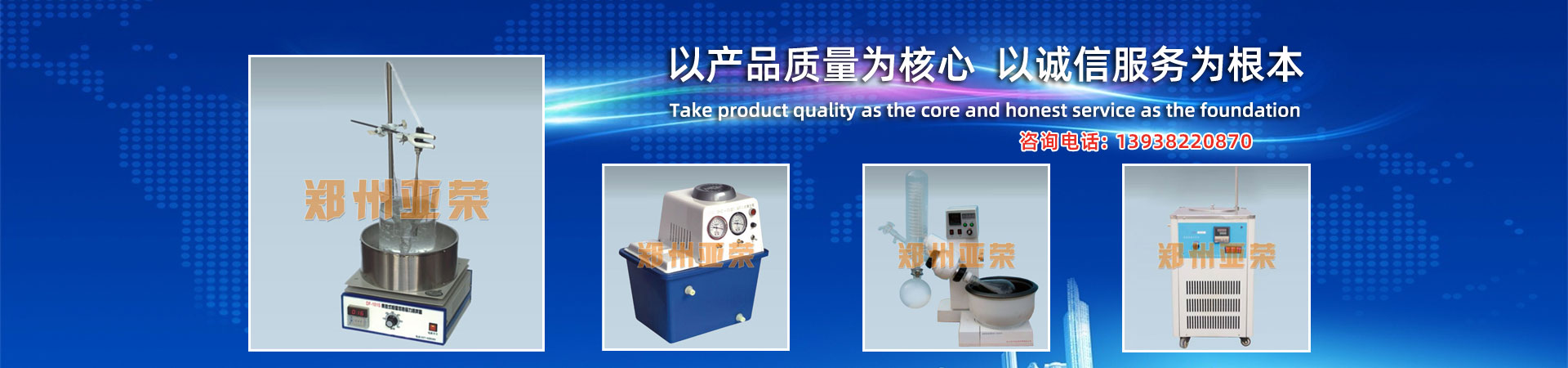 鄭州市亞榮儀器有限公司是主要銷售教學儀器的專業廠家,主要生產旋轉蒸發儀雙層玻璃反應釜、旋轉蒸發器循環水真空泵玻璃儀器氣流烘干器低溫冷卻液循環泵、真空抽濾器電熱鼓風干燥箱、真空干燥箱、水熱合成反應釜、高壓反應釜、數顯恒溫電熱套、高溫油浴鍋、磁力攪拌器、超聲波清洗器、水(油)浴鍋、冷凍干燥機、智能玻璃恒溫水浴、水槽,臺式高速離心機、紫外分析儀、控溫儀、振蕩器、微波化學反應器、顯微熔點測定儀、聚四氟乙烯攪拌棒、攪拌塞、攪拌子、升降臺等多種型號的教學儀器。